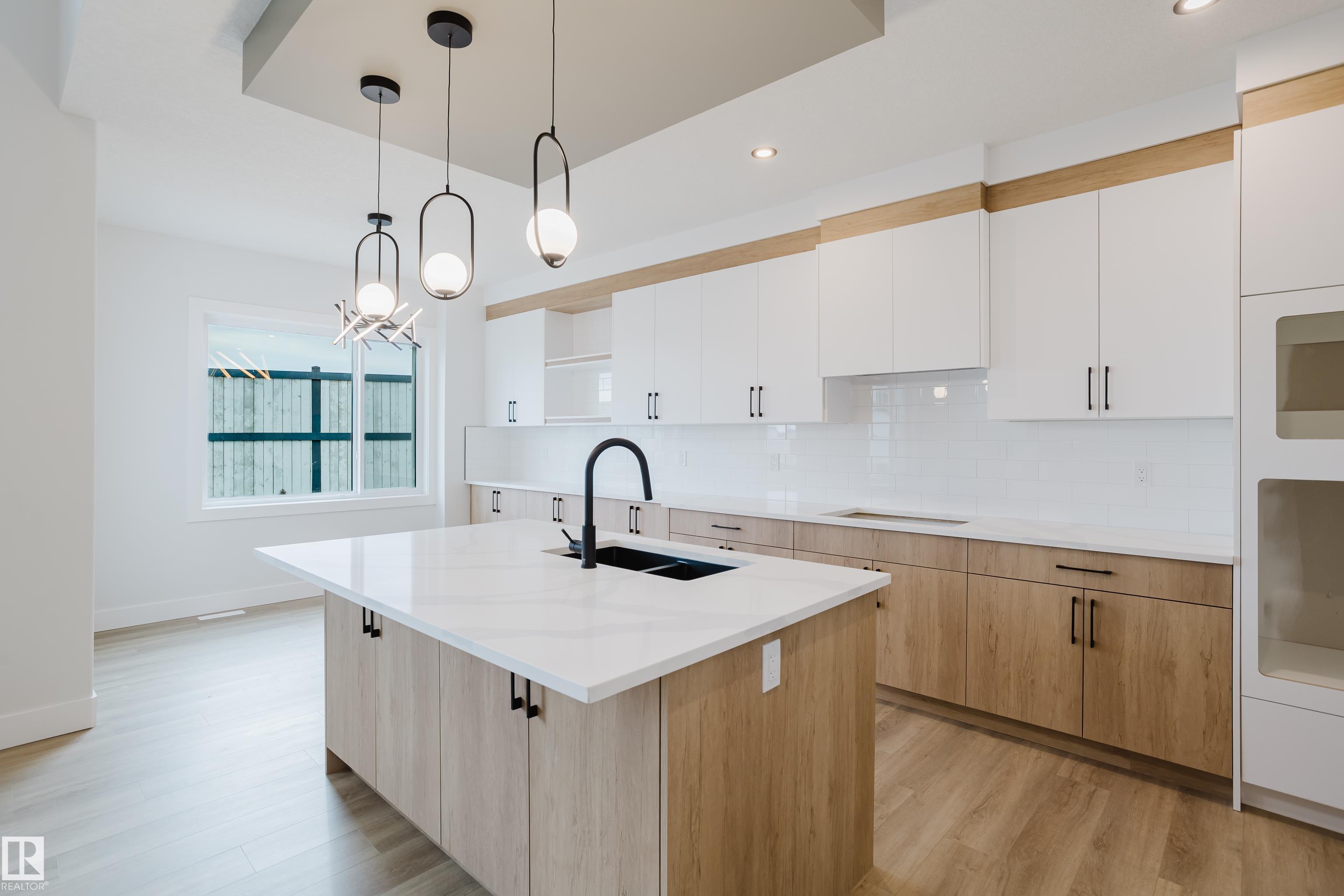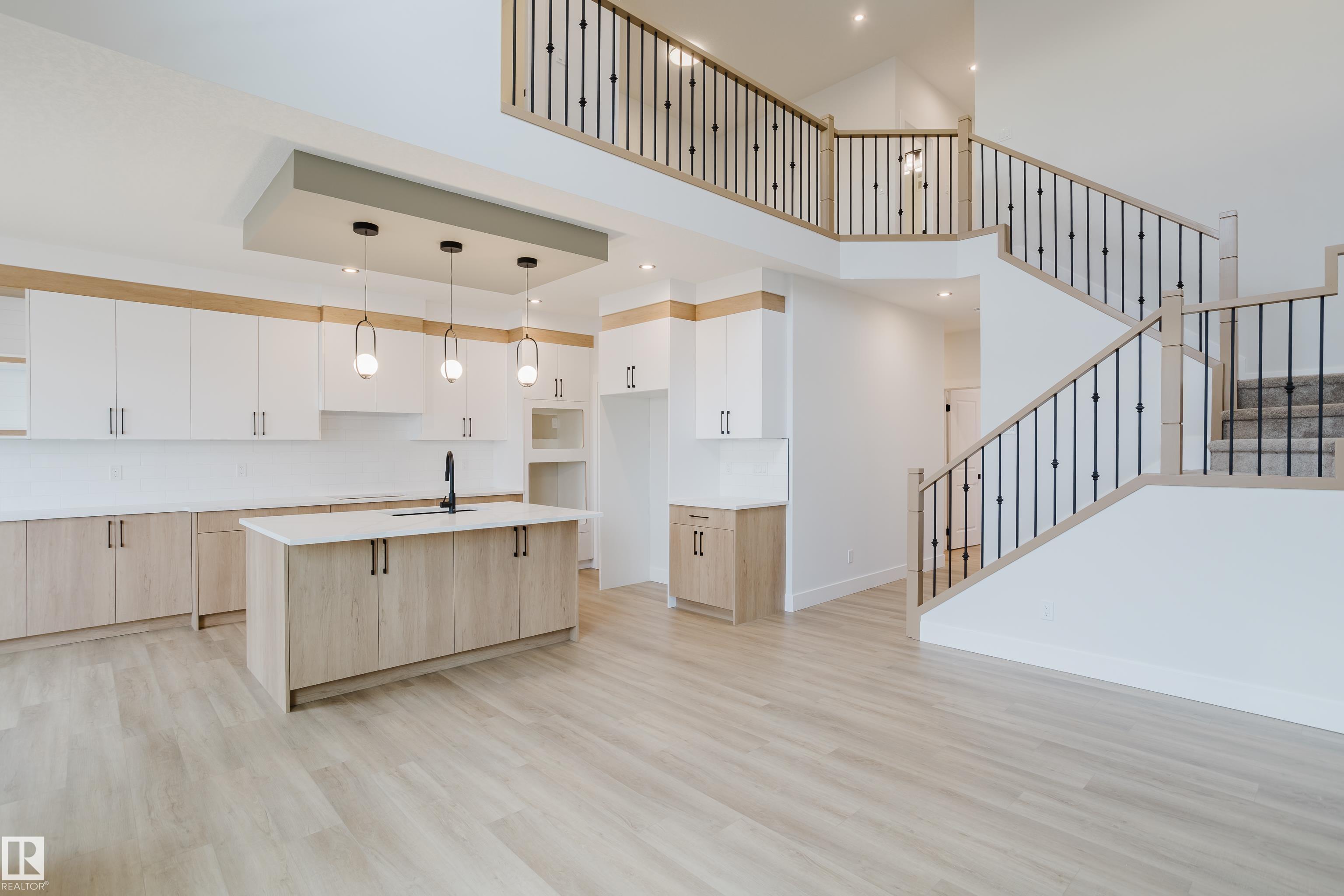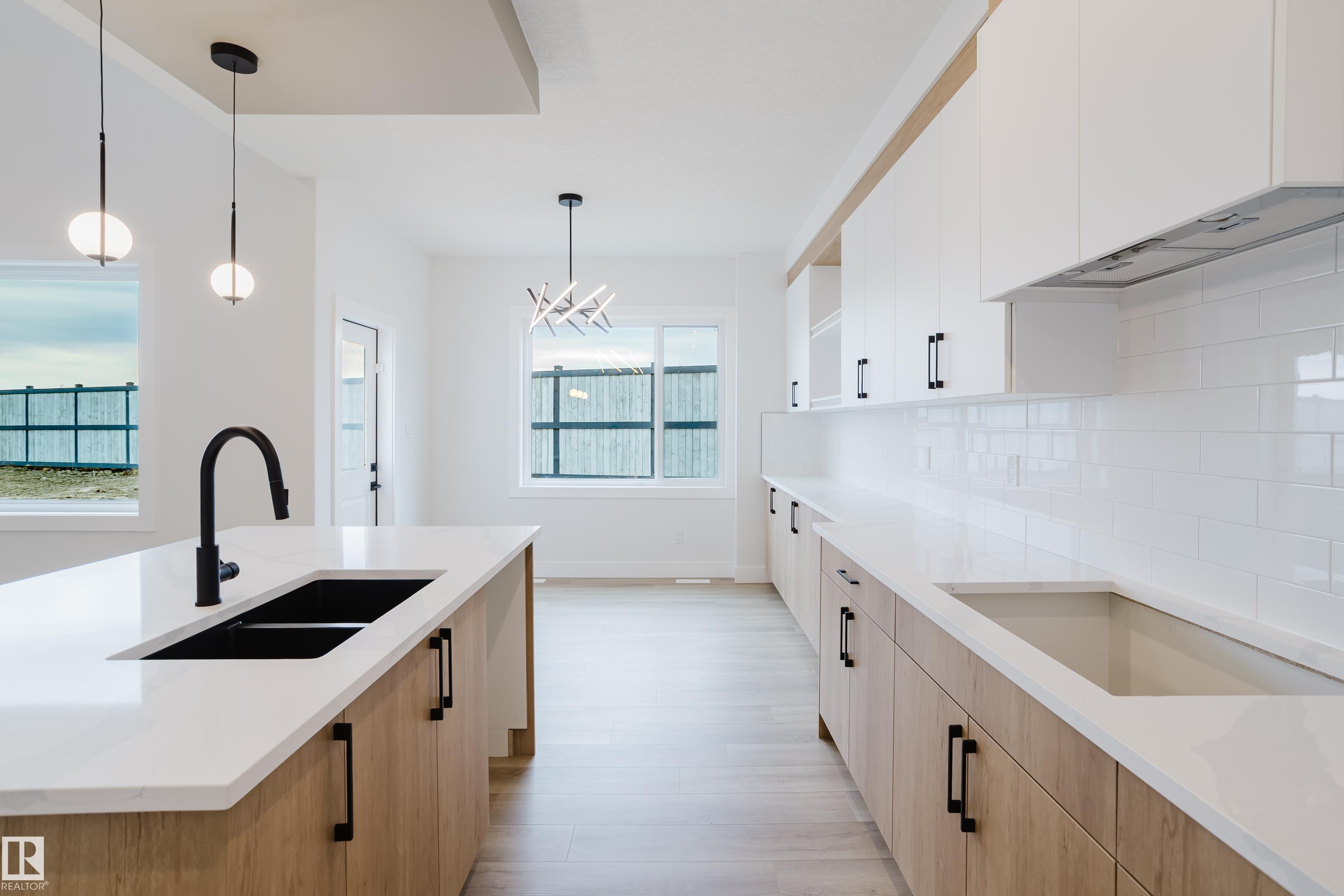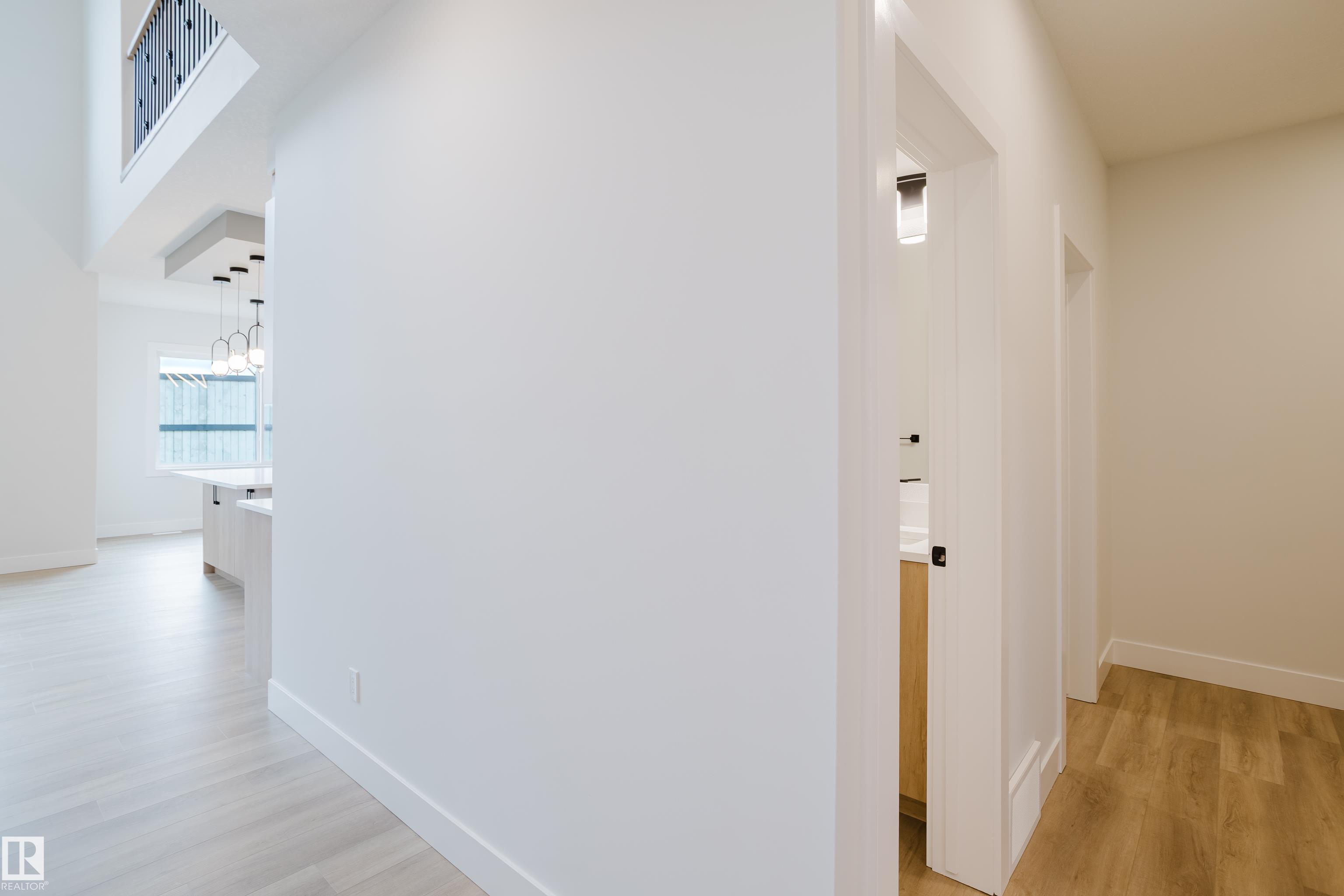 Welcome to this beautifully designed 4-bedroom, 3-bathroom home located in the desirable community of Meadowview in Leduc. The main floor features modern vinyl plank flooring, 9-foot ceilings, and an impressive open-to-above living room that allows for an abundance of natural light. A main-floor bedroom and full bathroom offer flexible living options, ideal for guests or multi-generational families. The kitchen is equipped with contemporary finishes and connects seamlessly to the dining area, making it perfect for everyday living and entertaining. Upstairs, you'll find three spacious bedrooms, including a primary suite with a 5-piece ensuite featuring a separate shower and soaker tub. The unfinished basement includes a separate entrance for potential future development. Located close to schools, parks, and amenities, this home offers both comfort and convenience in a growing family-friendly neighbourhood.