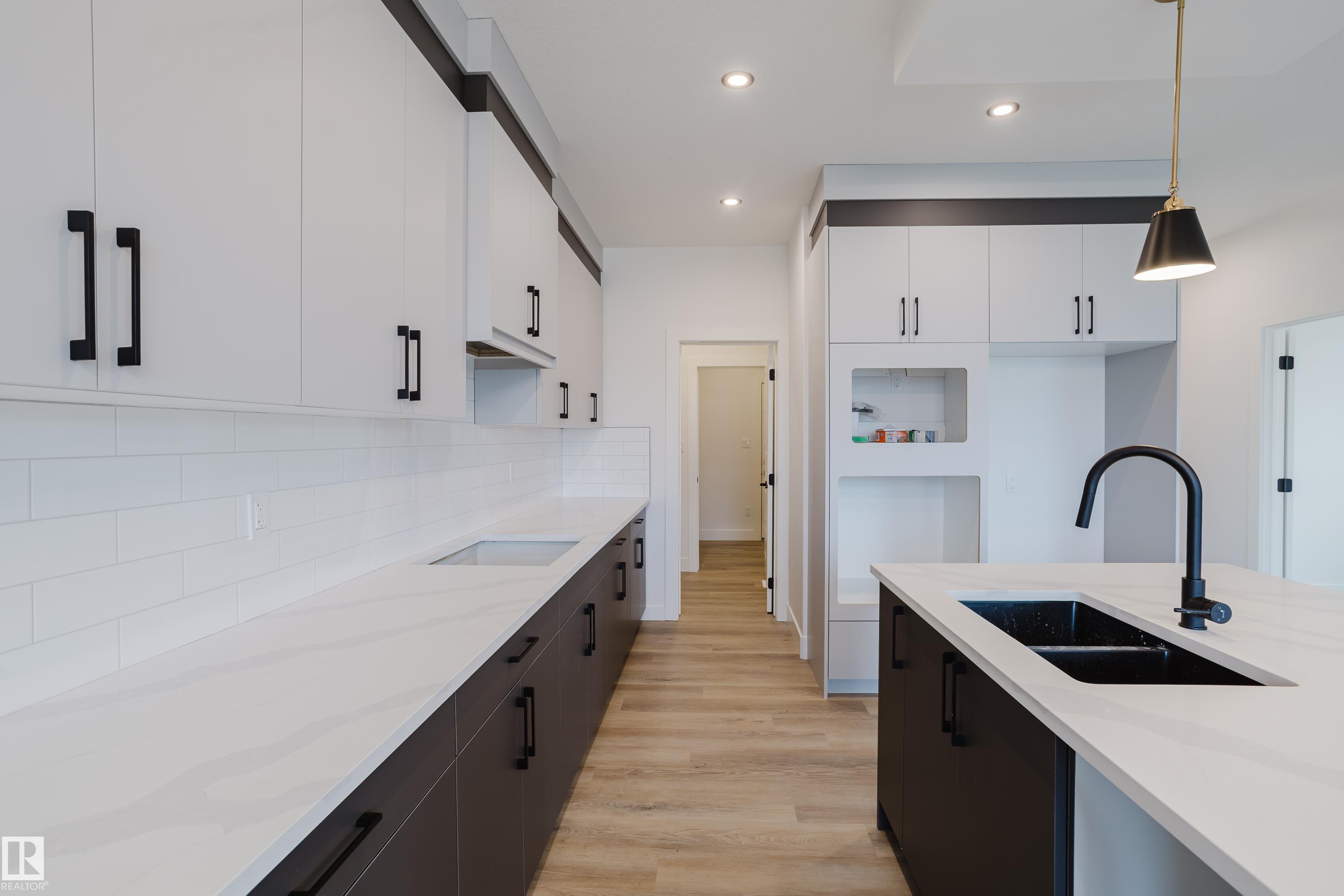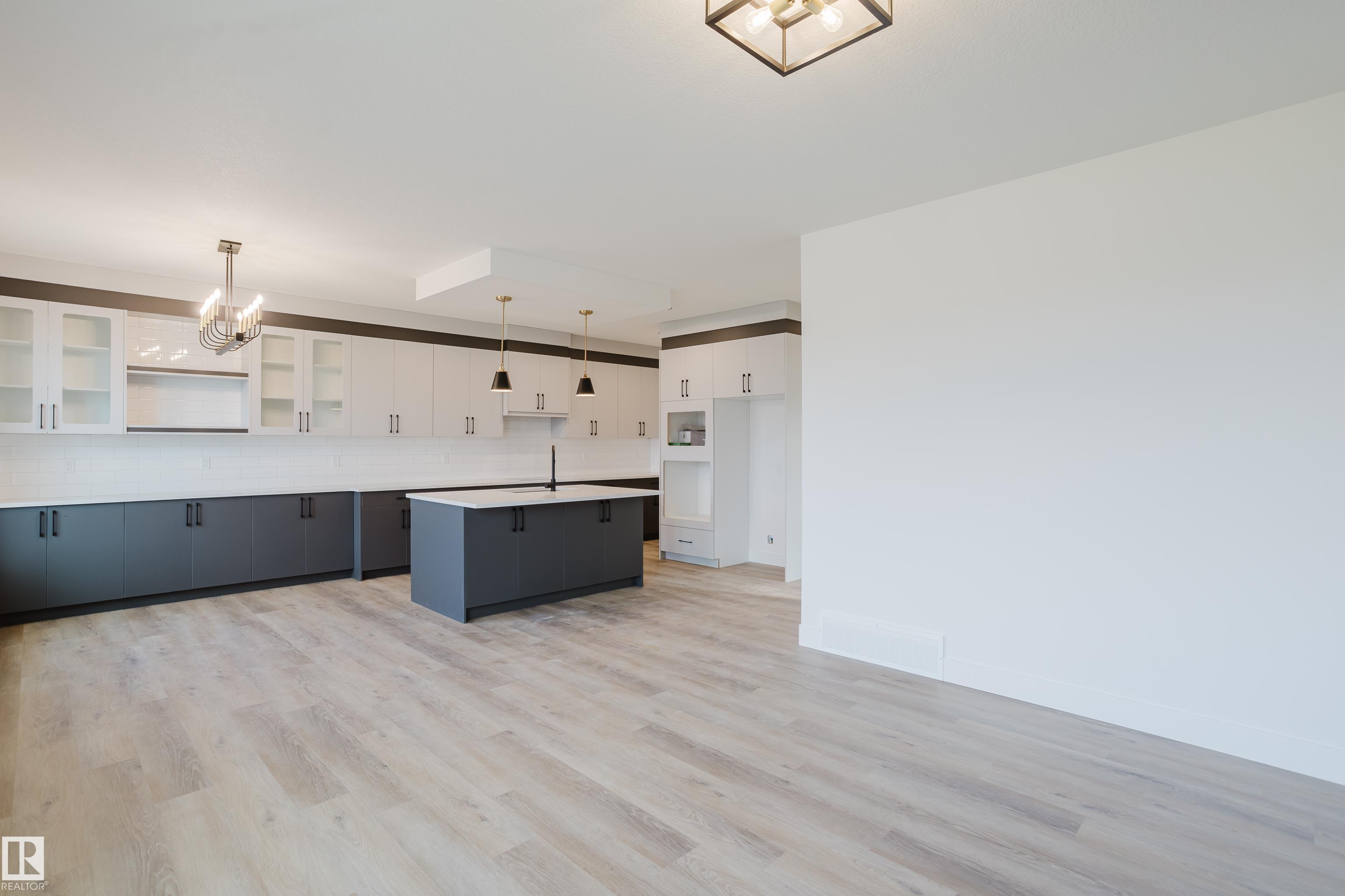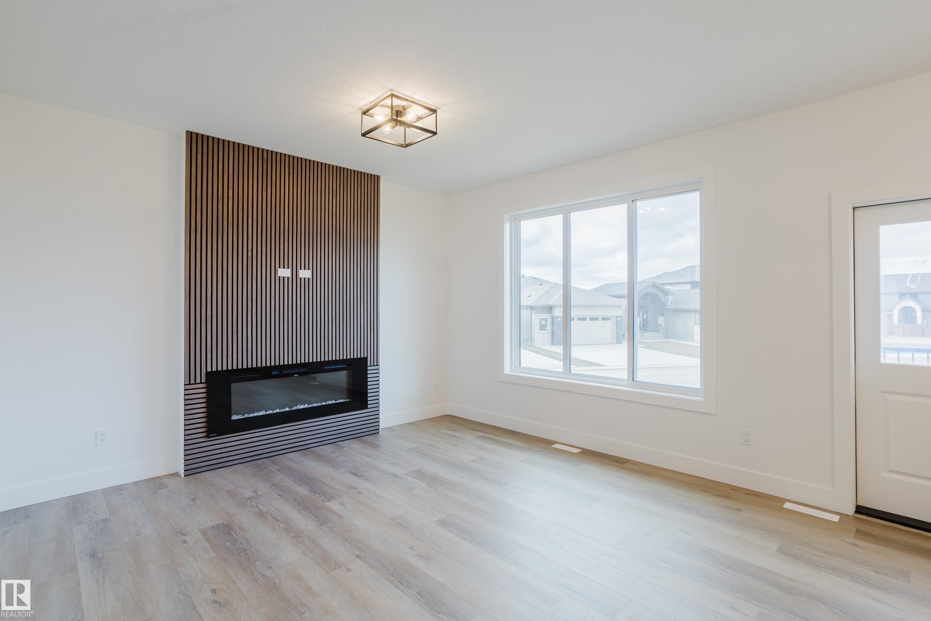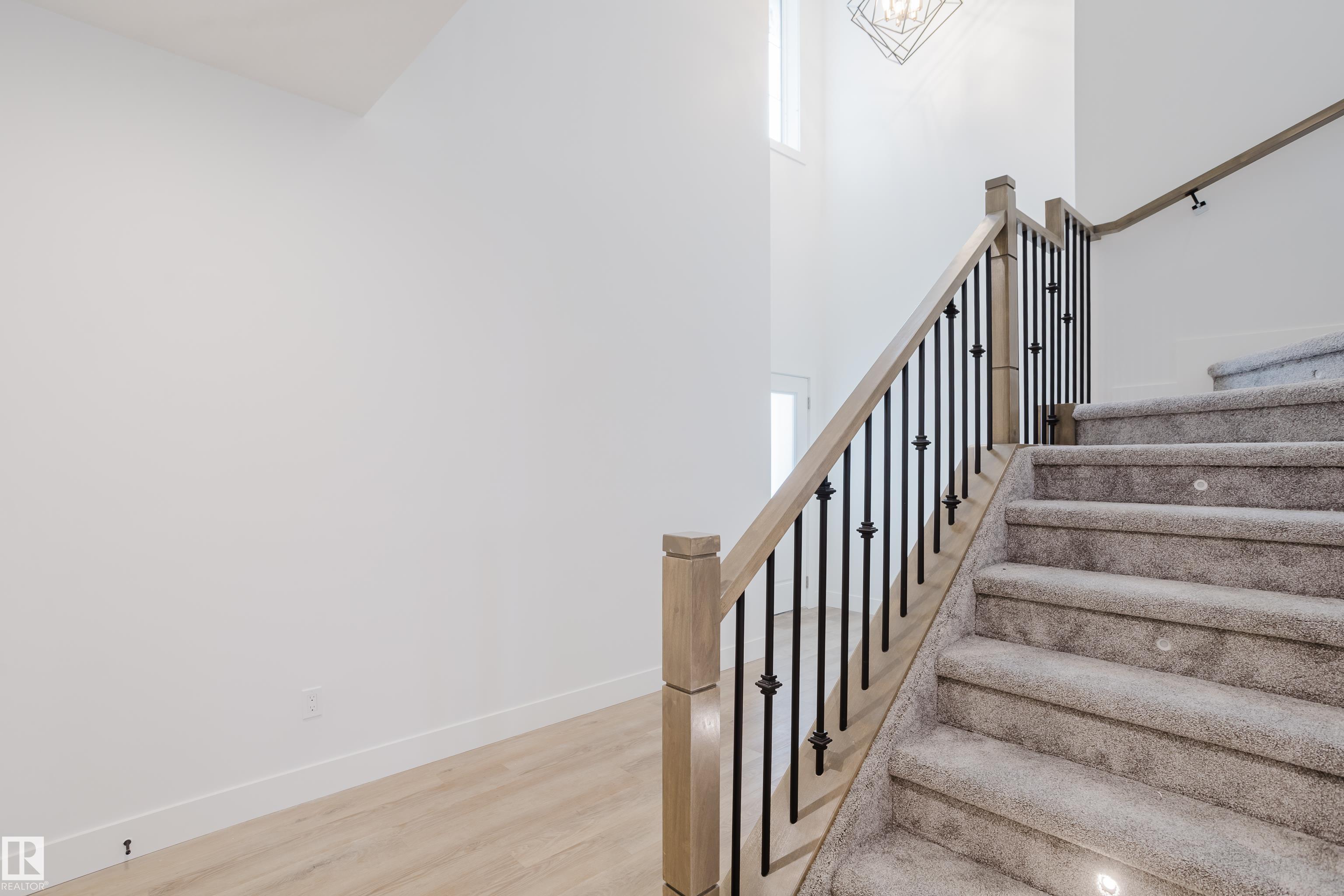 Backing onto a peaceful park in Spruce Grove's prestigious Fenwyck community, this beautifully designed corner-lot home blends luxury, functionality, and architectural flair. A rare triple garage with dedicated RV parking offers exceptional convenience, while the side entrance adds flexibility for future suite potential or private access. Step into the grand open-to-above foyer, where soaring ceilings and natural light create an impressive welcome. The main floor features a versatile den and full bathroom--ideal for guests, remote work, or multigenerational living. The spacious living area flows seamlessly into the kitchen and dining spaces, designed for comfort and entertaining. Upstairs, three generous bedrooms are complemented by a large bonus room perfect for family movie nights, a play area, or a private retreat. Well-appointed bathrooms and thoughtful design details elevate comfort throughout. Outside, a generous rear deck overlooks the tranquil park setting, ideal for relaxing evenings.