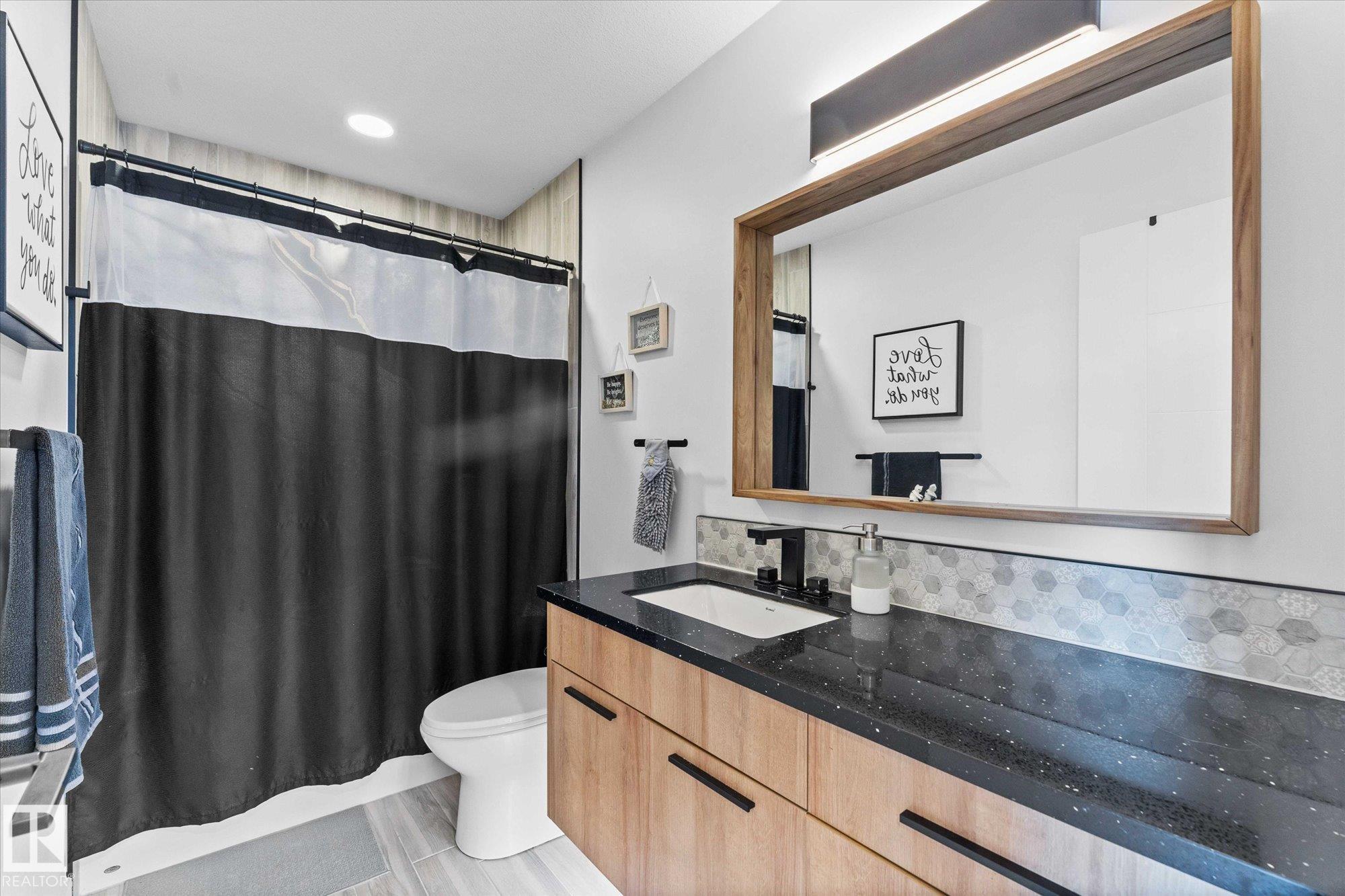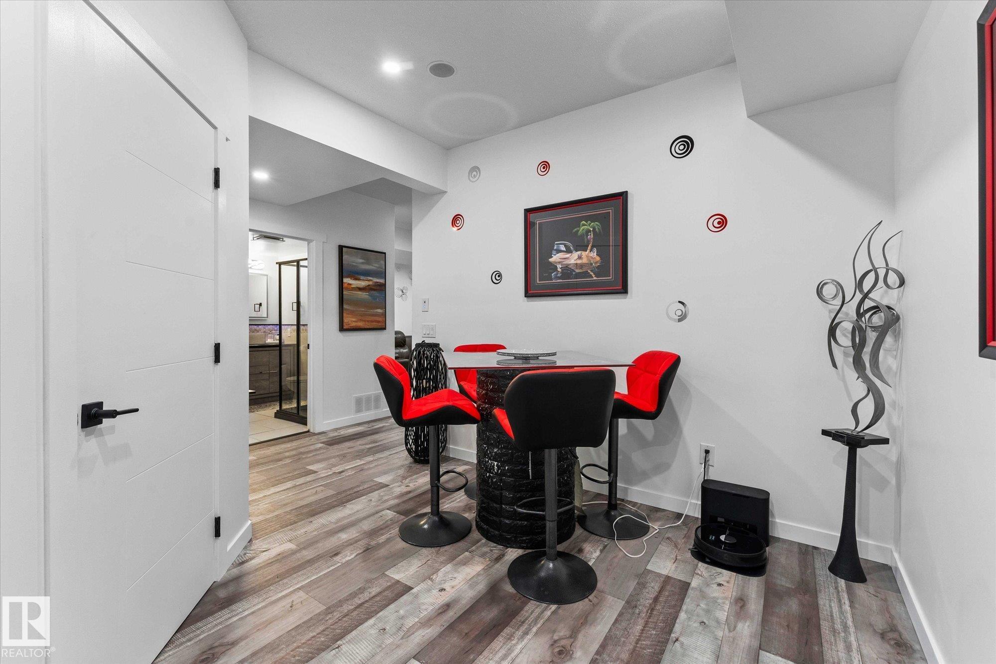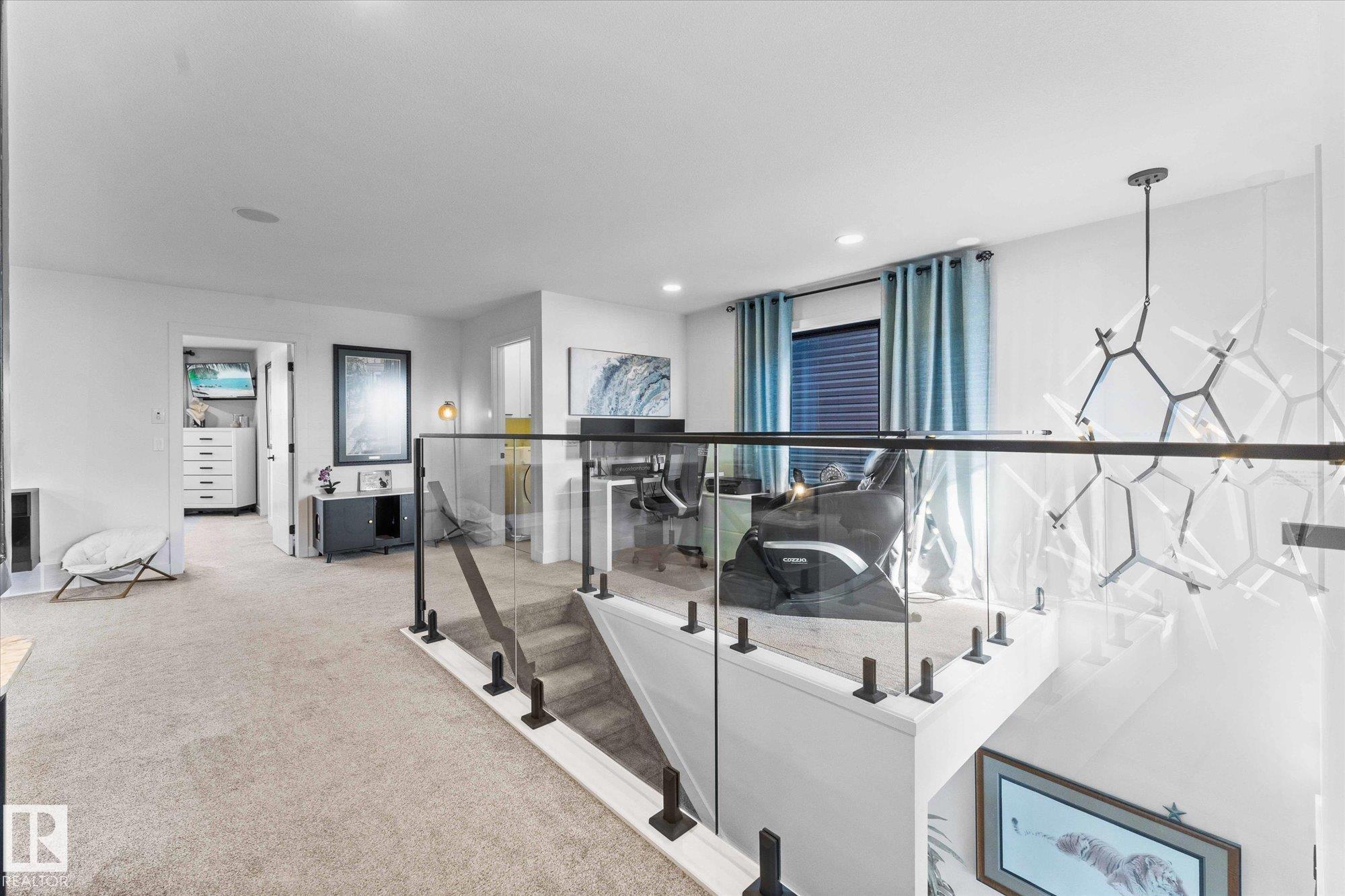 Welcome to 9 Brunwyck in Fenwyck. With almost 2800 sq ft of luxurious living space, this stunning home is perfect for the family w/4 spacious bdrms & a ton of upgrades. Custom quartz kitchen boasts floor-to-ceiling 2-tone cabinetry, under-cabinet lighting, single-level waterfall island, premium vinyl flooring, walk-through pantry, black SS appliances, soft-close drawers, & beautiful mosaic backsplash. Stunning stone-surround fireplace in LR. Dining area provides access to spacious deck w/glass railings. On main floor, you'll find a grand entrance, half bath, & 8-ft doors that add to overall appeal. Upstairs, there are 3 generous sized bdrms, bonus rm, office space & laundry rm. King-sized primary has luxurious ensuite w/standalone tub & custom shower. Fully developed bsmt has fully equipped kitchenette, bdrm & spacious area for family time. Triple-pane windows, surround sound throughout, stair lighting, garage w/epoxy flooring & drain, beautiful landscaping, hot tub & gazebo, & A/C. It won'tÿlastÿlong!