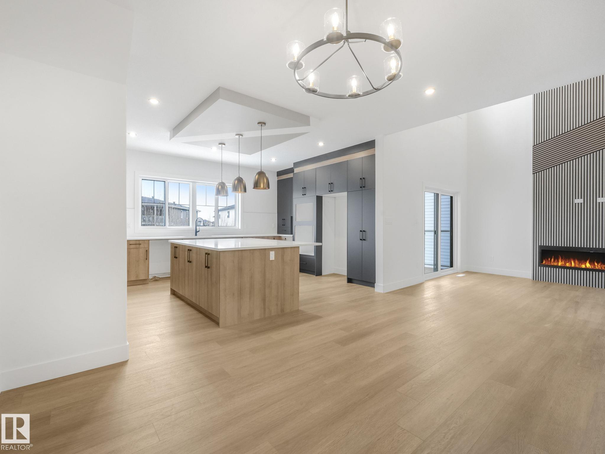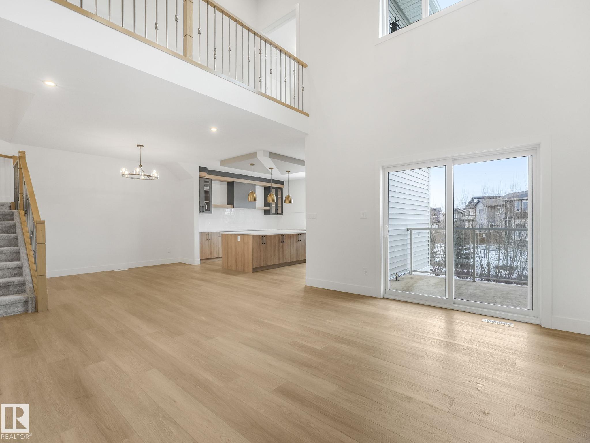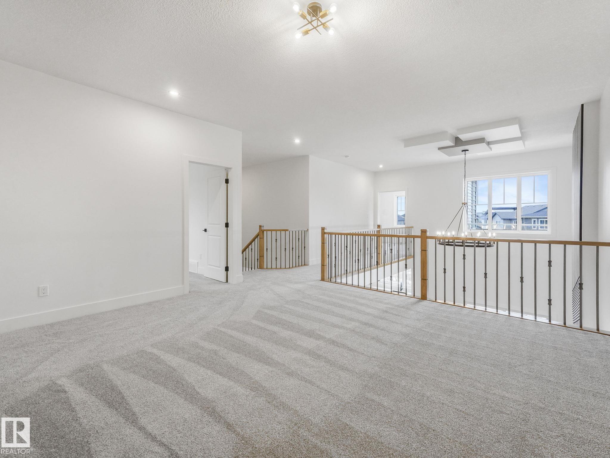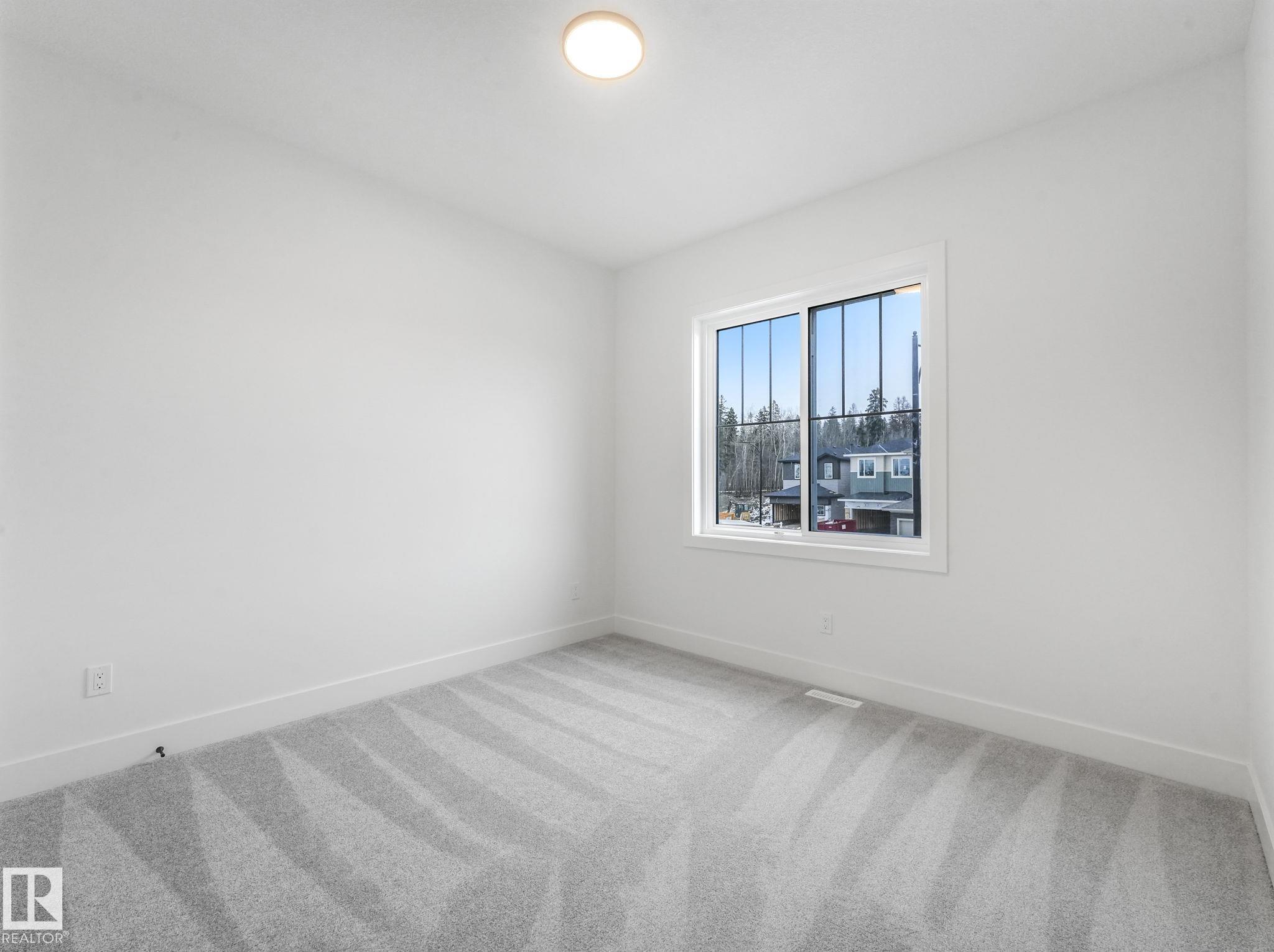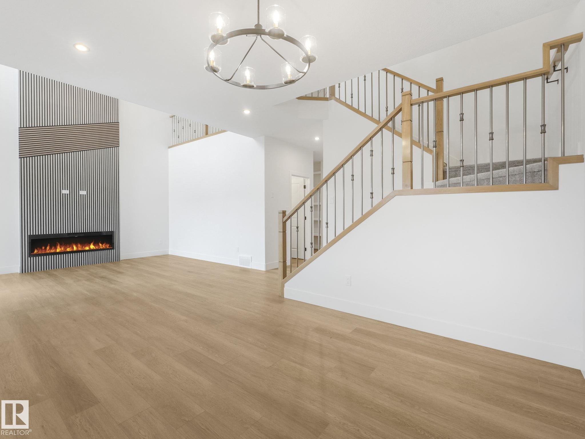 This brand-new home in McLaughlin, Spruce Grove offers a spacious, modern layout set against a beautiful ravine backdrop. Upstairs features 3 bedrooms, a second den, a bonus room, and convenient laundry, giving you plenty of space and flexibility for family living. The main floor adds even more versatility with a den and full bathroom, ideal for guests or a home office. The large wrap-around kitchen is finished with quartz countertops and modern cabinetry, offering ample prep and storage space while overlooking the impressive open-to-below living room with a fireplace, creating a bright and inviting atmosphere. Large rear windows capture the scenic views and bring in natural light. The walkout basement offers great potential for future development with direct outdoor access. Completing the home is an oversized double attached garage, providing extra room for parking and storage. With its functional layout, modern finishes, and prime ravine location, this home stands out in a growing Spruce Grove community