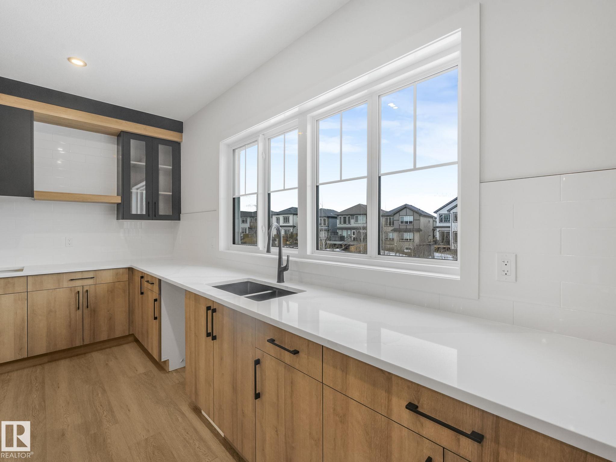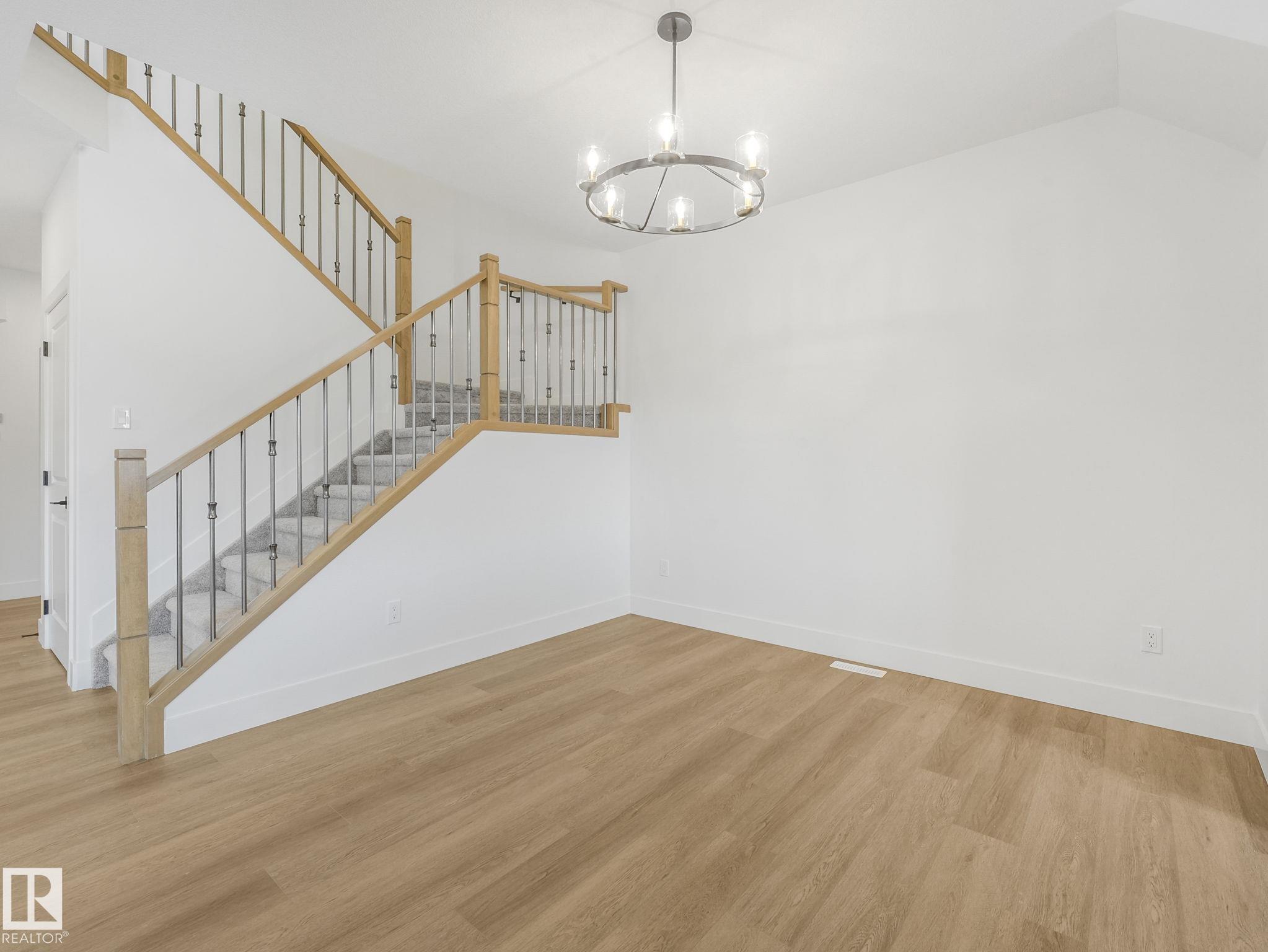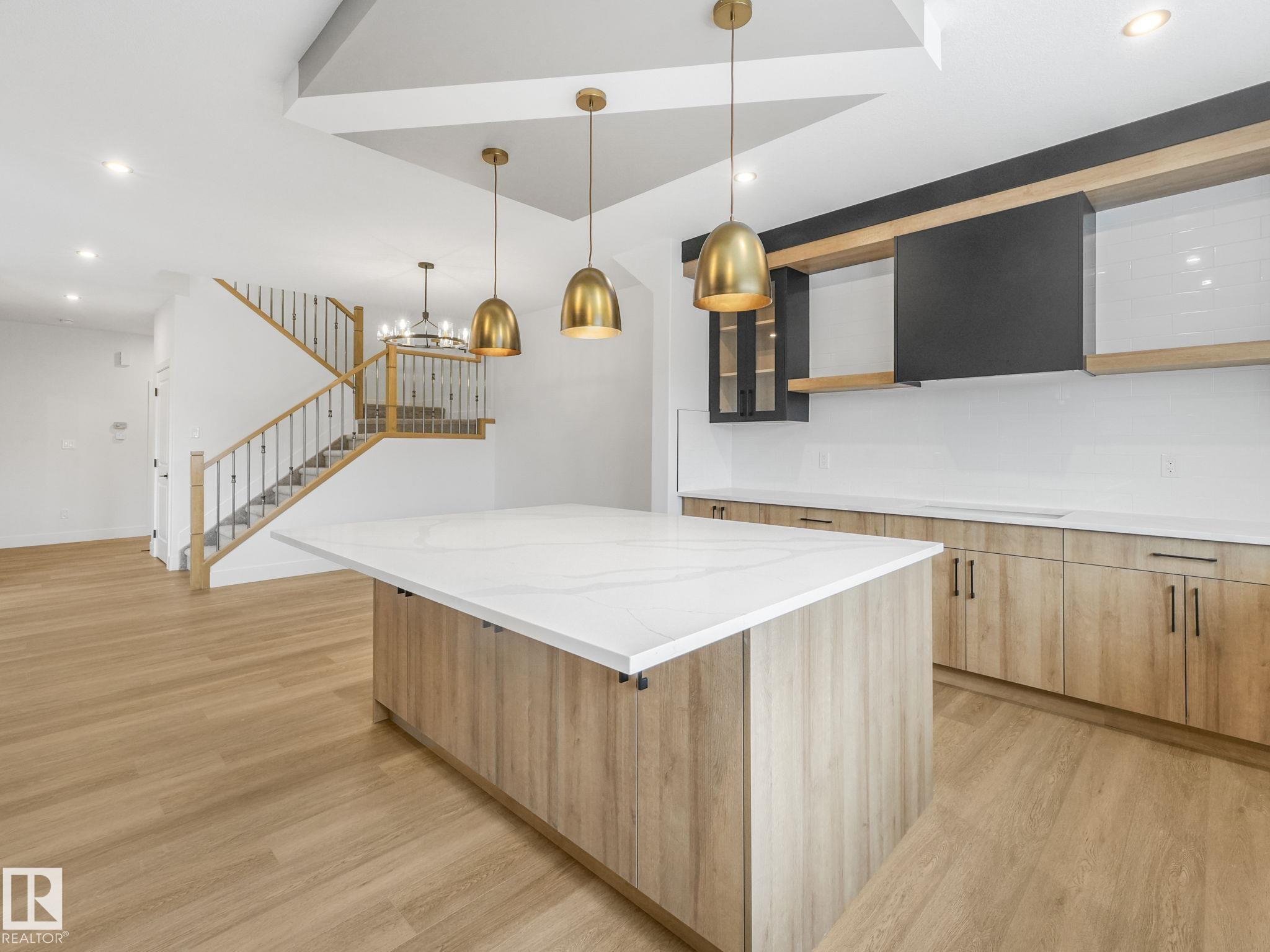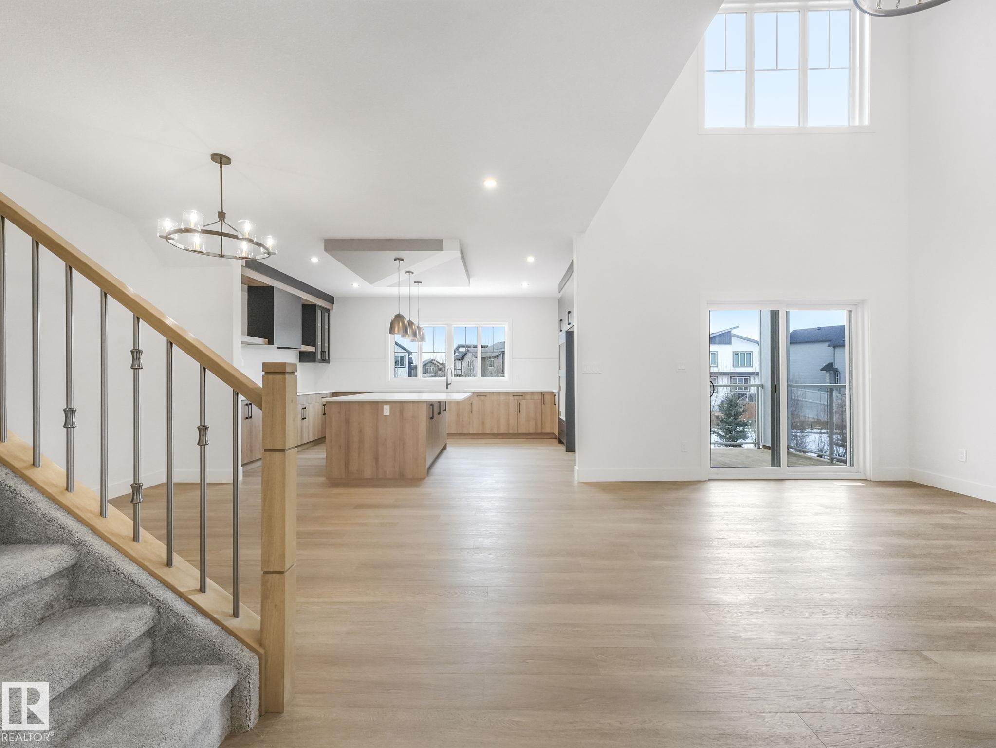 This brand-new home in McLaughlin, Spruce Grove offers a spacious, modern layout set against a beautiful ravine backdrop. Upstairs features 3 bedrooms, a second den, a bonus room, and convenient laundry, giving you plenty of space and flexibility for family living. The main floor adds even more versatility with a den and full bathroom, ideal for guests or a home office. The large wrap-around kitchen is finished with quartz countertops and modern cabinetry, offering ample prep and storage space while overlooking the impressive open-to-below living room with a fireplace, creating a bright and inviting atmosphere. Large rear windows capture the scenic views and bring in natural light. The walkout basement offers great potential for future development with direct outdoor access. Completing the home is an oversized double attached garage, providing extra room for parking and storage. With its functional layout, modern finishes, and prime ravine location, this home stands out in a growing Spruce Grove community