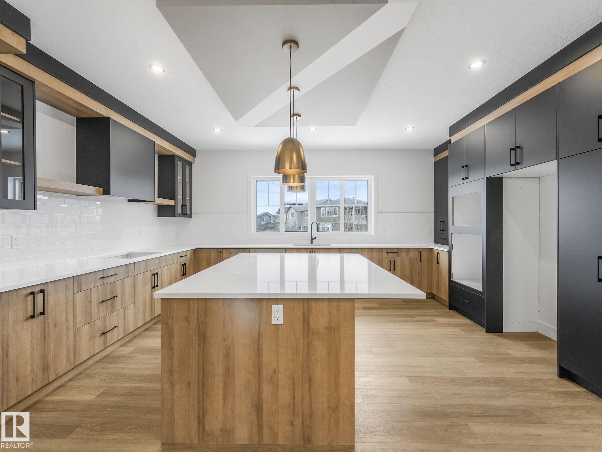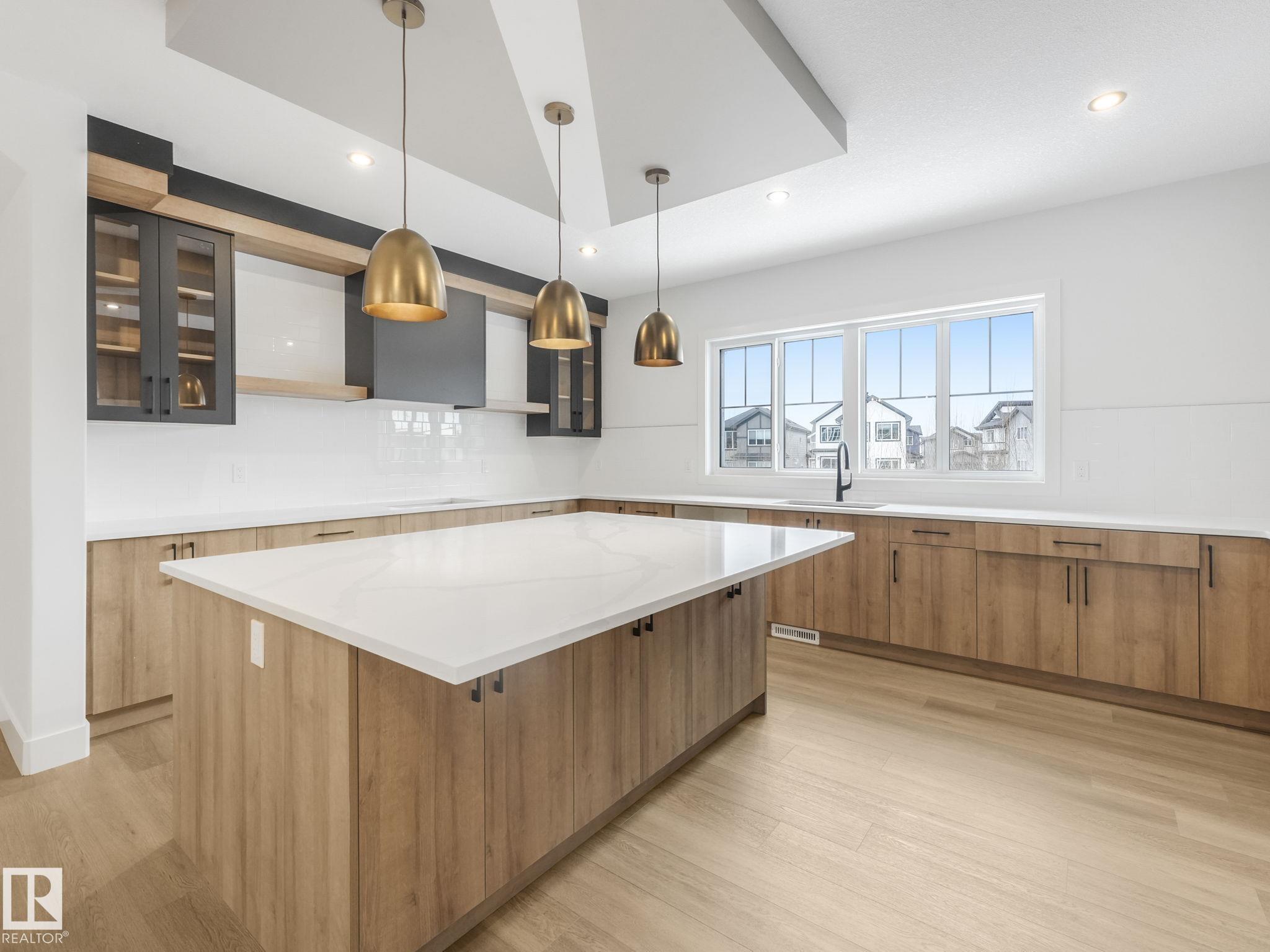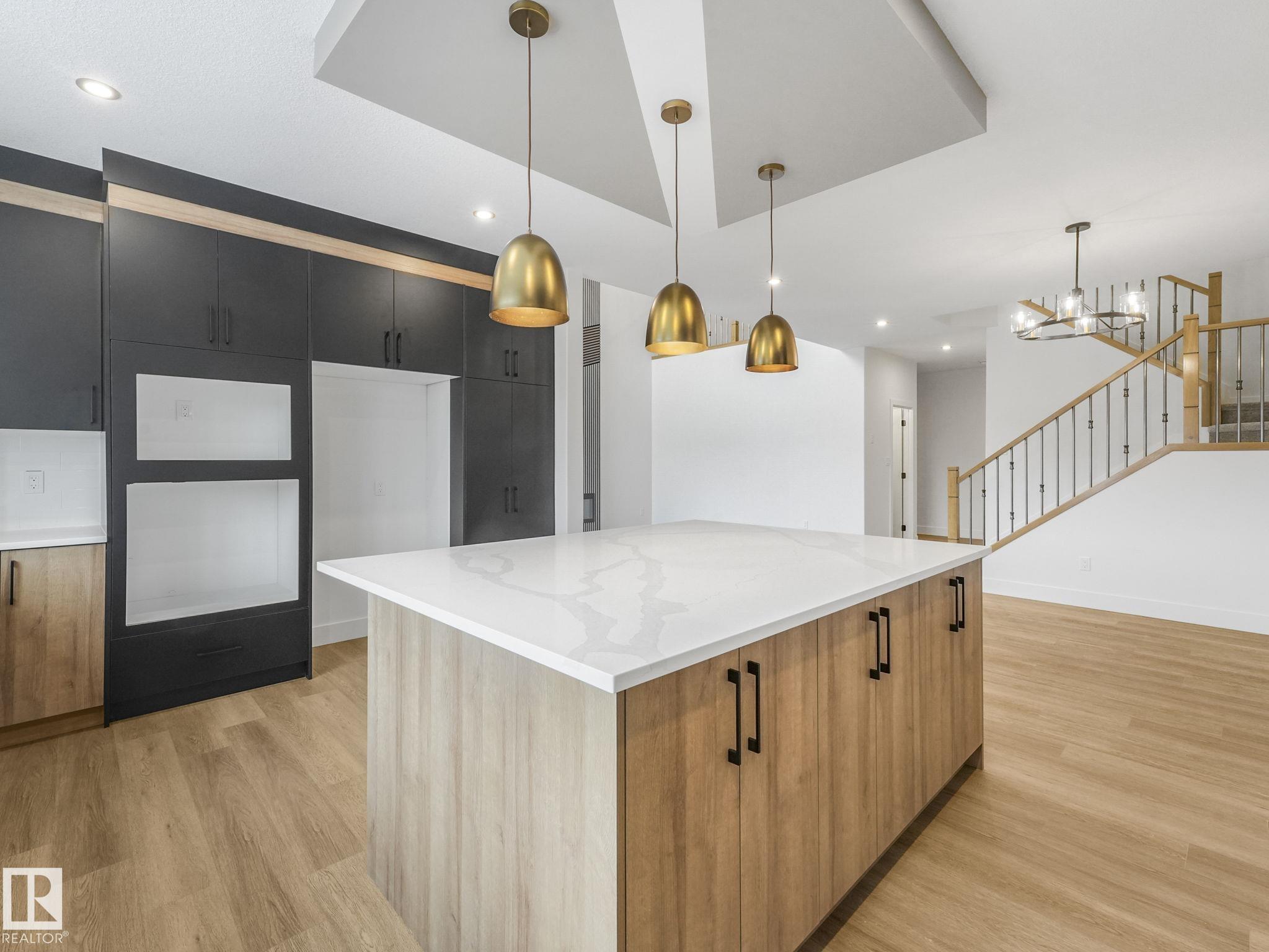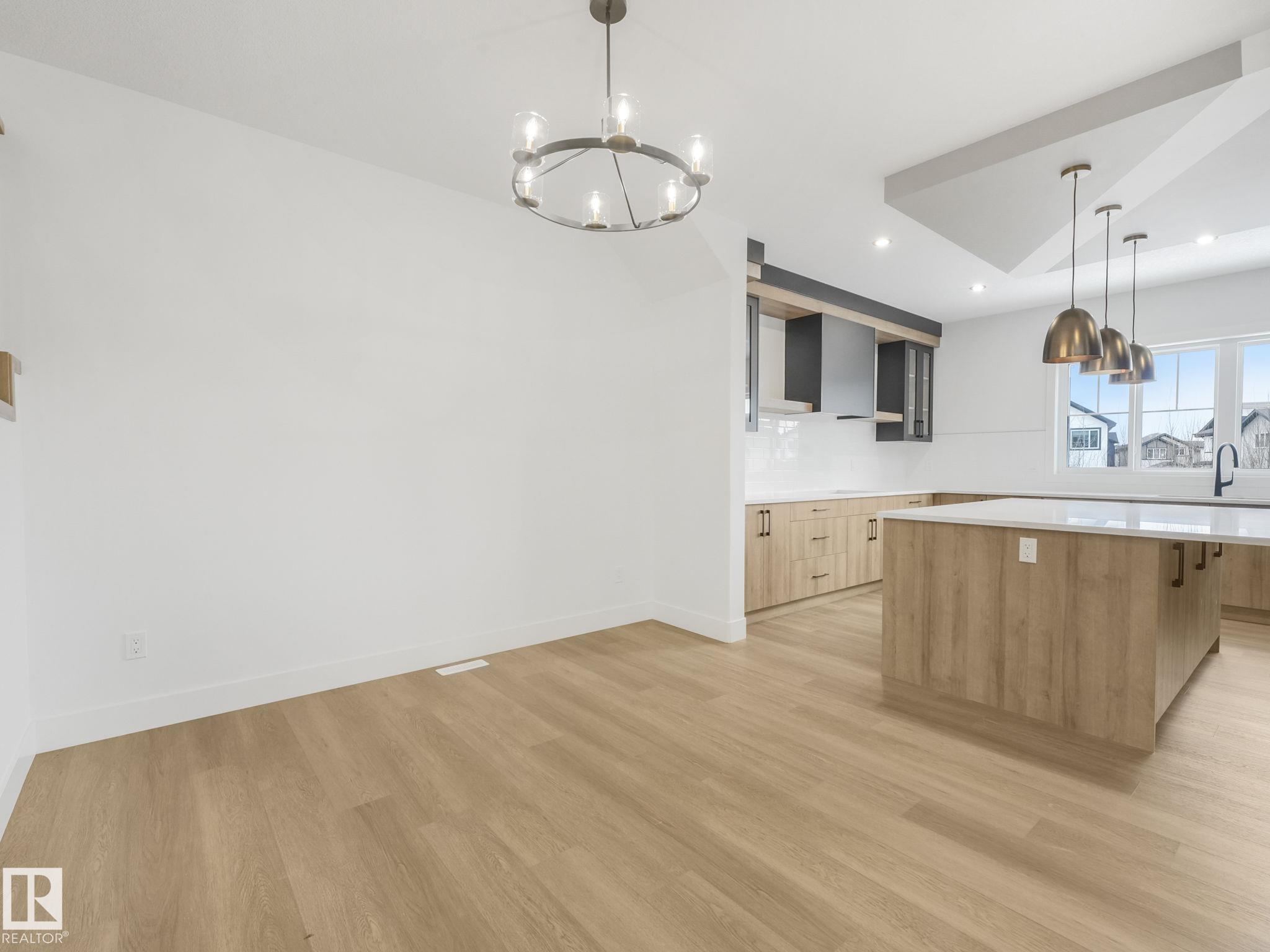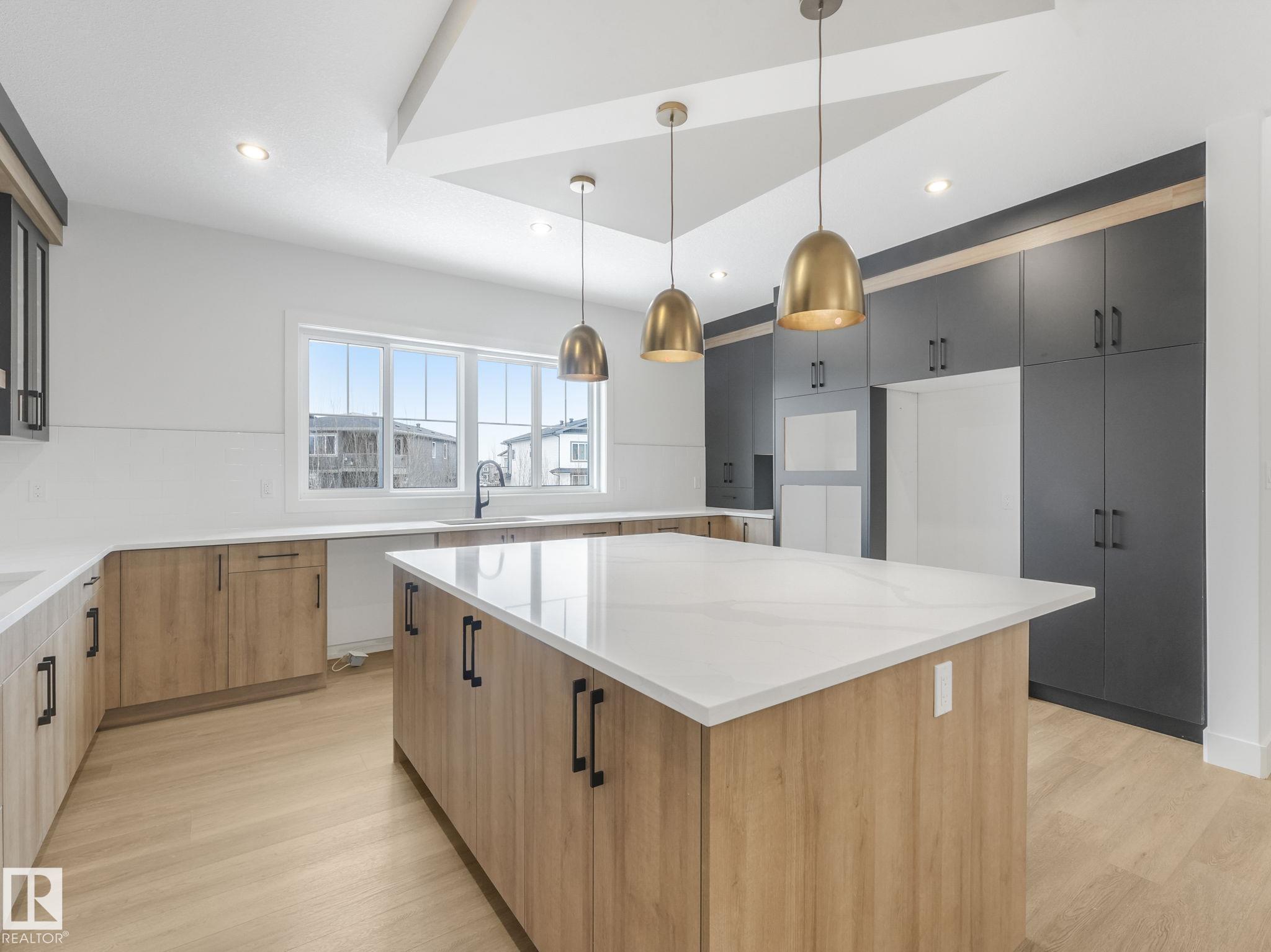 This brand-new home in McLaughlin, Spruce Grove offers a spacious, modern layout set against a beautiful ravine backdrop. Upstairs features 3 bedrooms, a second den, a bonus room, and convenient laundry, giving you plenty of space and flexibility for family living. The main floor adds even more versatility with a den and full bathroom, ideal for guests or a home office. The large wrap-around kitchen is finished with quartz countertops and modern cabinetry, offering ample prep and storage space while overlooking the impressive open-to-below living room with a fireplace, creating a bright and inviting atmosphere. Large rear windows capture the scenic views and bring in natural light. The walkout basement offers great potential for future development with direct outdoor access. Completing the home is an oversized double attached garage, providing extra room for parking and storage. With its functional layout, modern finishes, and prime ravine location, this home stands out in a growing Spruce Grove community