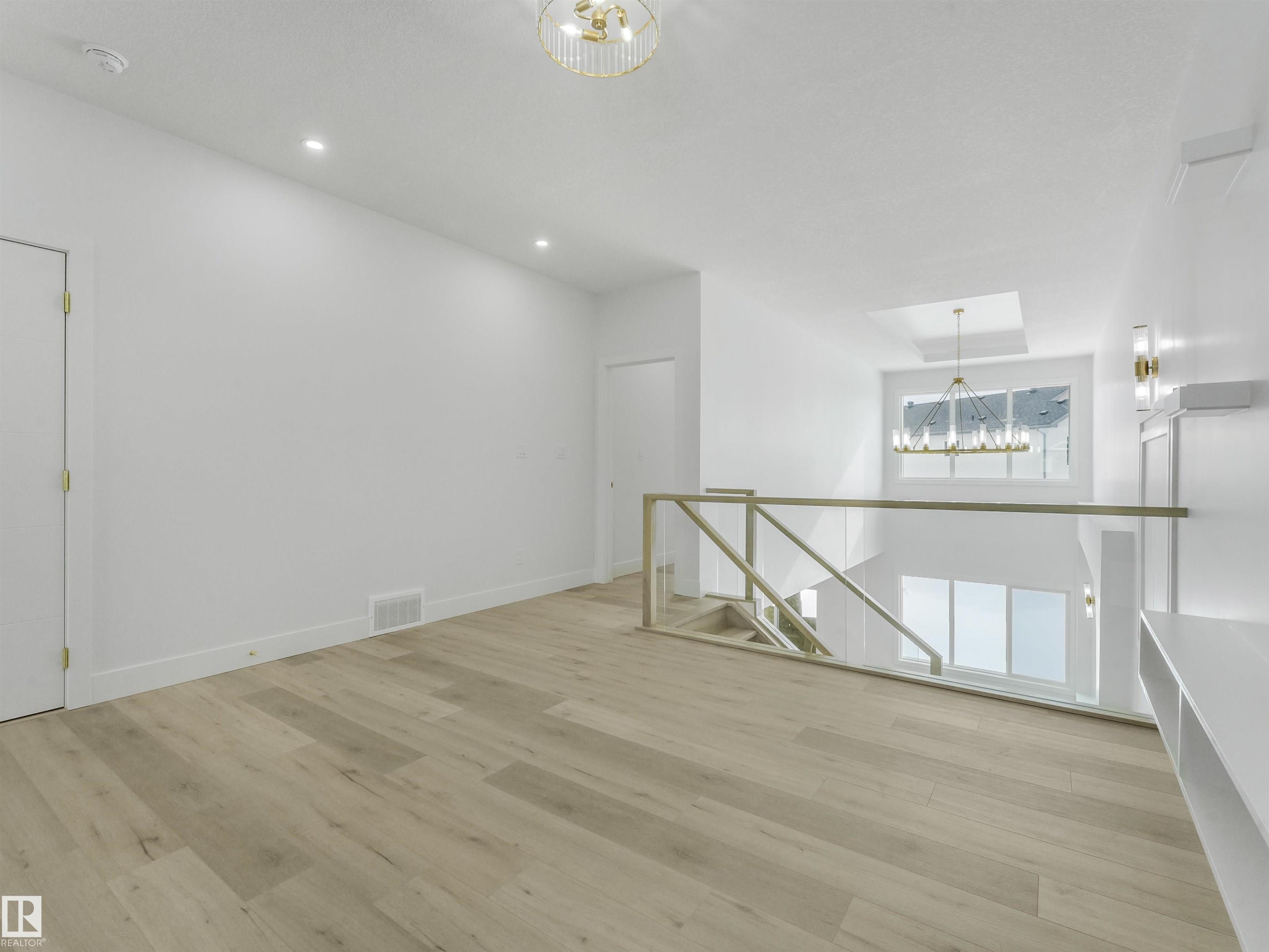 Welcome to the sought-after Hillshire community in Sherwood Park! This beautifully designed 1,820 sq ft duplex offers 4 bedrooms and 3 full bathrooms, featuring a bright open-to-below living area that enhances natural light and space. The main floor includes a bedroom and full bathroom, perfect for guests or multi-generational living. Upstairs, enjoy spacious bedrooms including a primary suite with walk-in closet and ensuite. Thoughtfully designed with modern finishes and a functional layout, this home is ideal for comfortable family living in a growing, well-connected community.